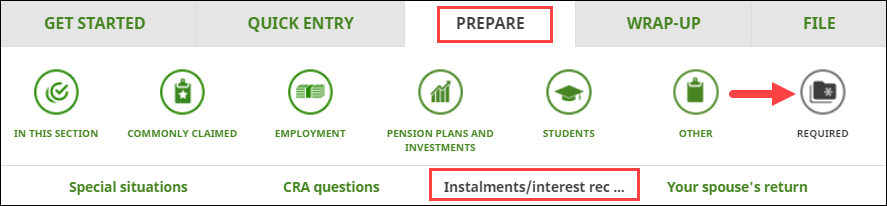 - Navigate to the Instalments/interest received/direct deposit page. You’ll find yourself here: