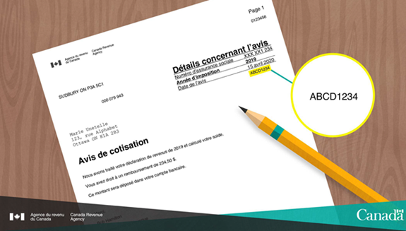Si vous consultez votre avis de cotisation dans Mon dossier de l'ARC ou à l'aide du service ADC express dans le logiciel d'impôt, votre code est désigné sous le nom de Code d'accès et se trouve sous l'encadré Détails concernant l'avis.